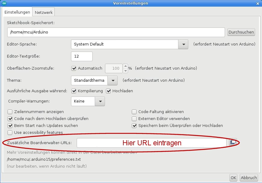 Installieren des Cores für Arduino Legacy IDE 1.8.x