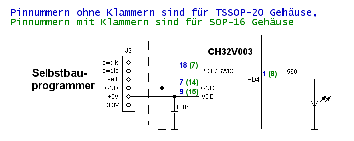 jetzt hinsichtlich einer Programmerstellung für CH32V003 erläutert werden, wie die aus dem Archiv entpackten Programme mit einem